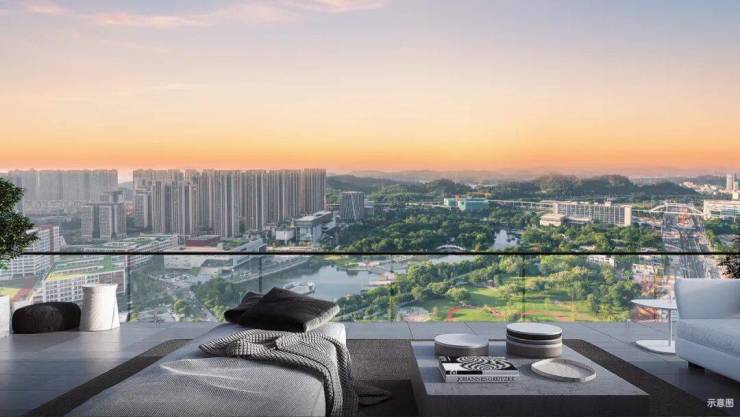 财富城二期的高区,不仅是对高度的选择,更是对自然光资源的终极占有。当城市建筑日益密集,阳光成为日常奢侈品。清晨,山色与晨光穿透玻璃幕墙,透过窗帘映照着清晨第一缕金色阳光。正午,将坪山中心公园绿意折射成跃动的光斑,鲜氧随光流浸润每个角落。黄昏,Low-E玻璃将刺目夕照柔化为琥珀色光晕,万家灯火在脚下渐次亮起,恍如星河落地。居此云端,非仅占一席之地,更是在享有城市珍贵的资源——永不落幕的阳光。