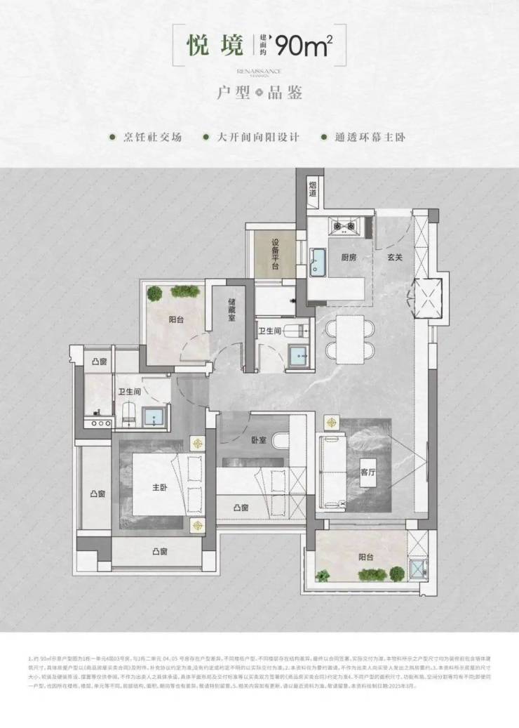1. 空间优势:这两个户型以朝东为主,清晨阳光充足,空气清新。相较于90㎡三房,空间尺度更为宽敞,尤其是客厅和卧室的面积有所增加,居住舒适度进一步提升。