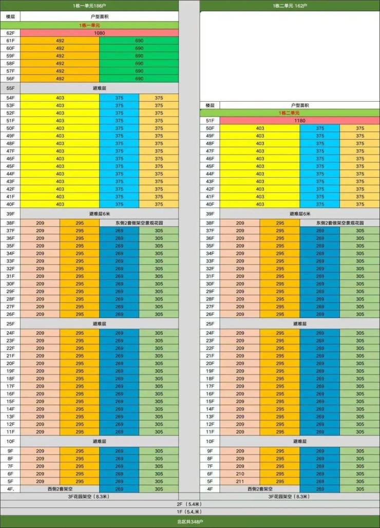58-62层:超高区(200m以上)是约500-700㎡大平层;