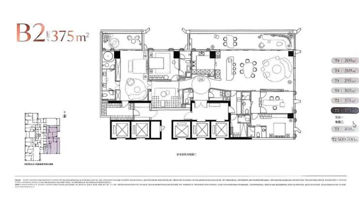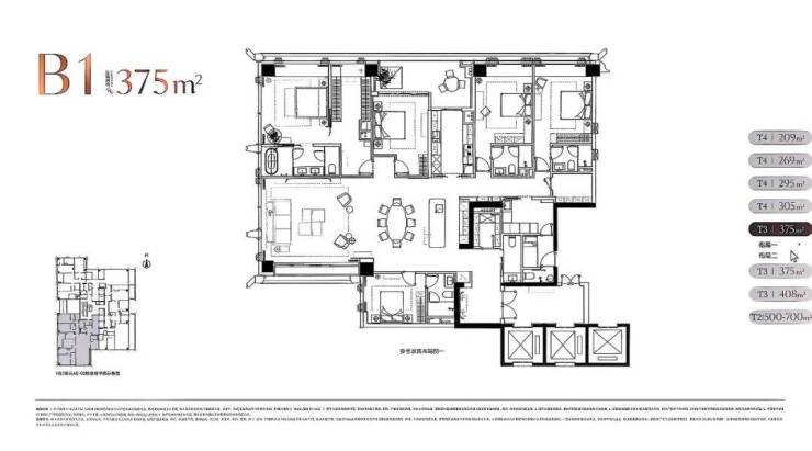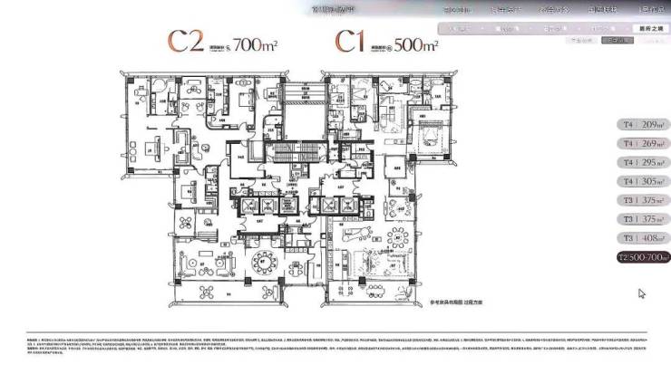 住宅面积段约:209~269~294~305~375~403~500~700~1050㎡ 都是大平层,都有大阳台(具体以官方公布为准)