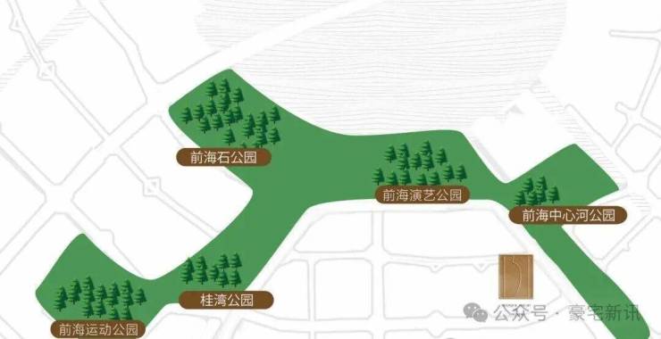 北拥双界河,西望前海湾,周边被 双界河公园、前海石公园、桂湾公园 等多个生态公园环绕,实现了都市核心与自然静谧的奇妙平衡。