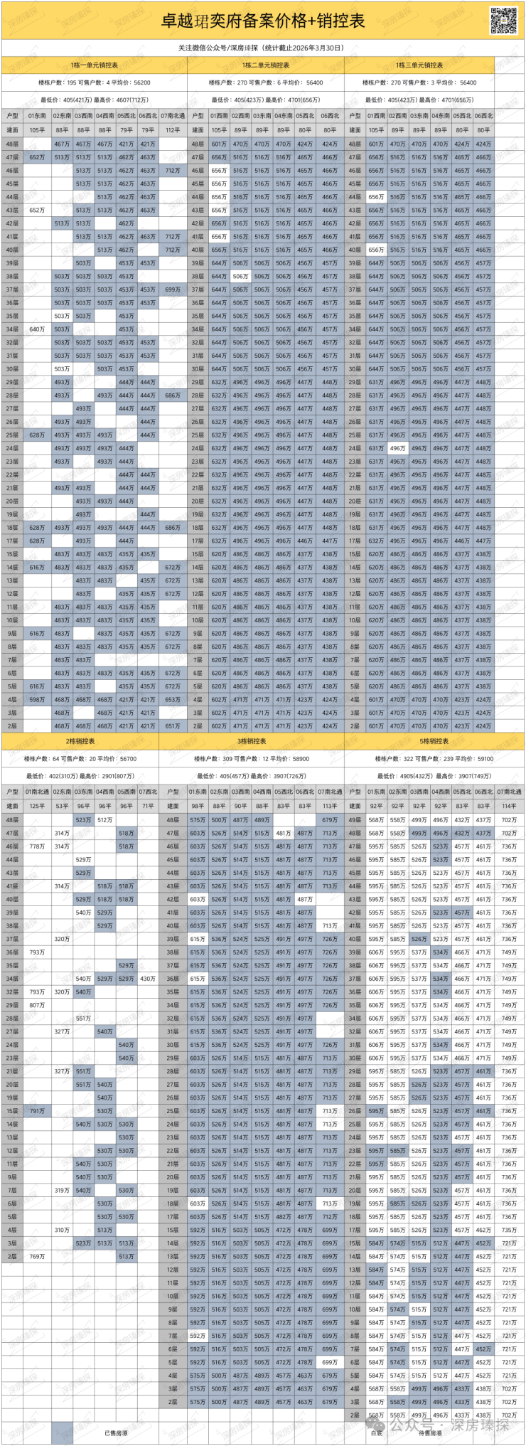 下面罗sir还特意做了份卓越珺奕府全套的备案价格+销控表,可以作为参考,如果想要具体的房号折后价格表,可以+微信私信罗sir。