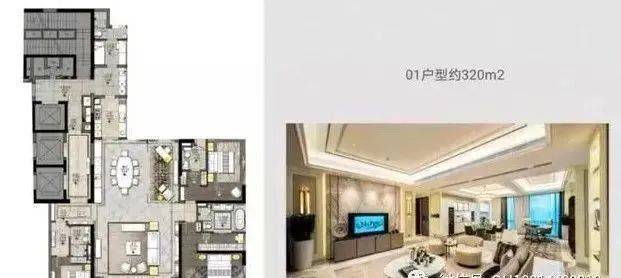 层复式,32—35F,上下4层,买一层送3层,产证面积250-320㎡,使用面积超过1000㎡,售价1.8—2亿