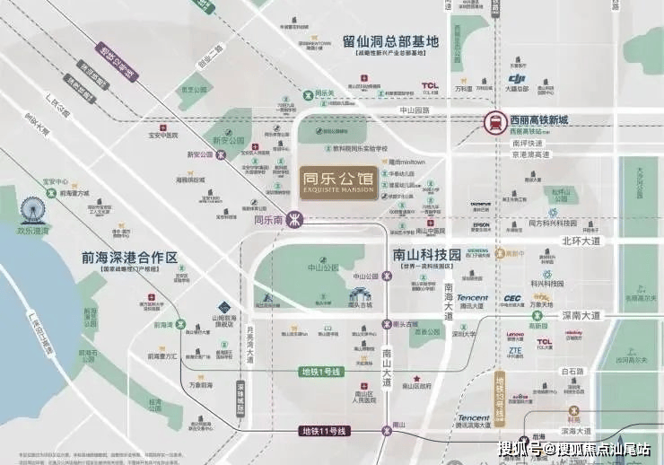 项目位于南山区与宝安区交界处,直线3公里覆盖科技园、前海自贸区、留仙洞总部基地三大产业核芯。科技园聚集腾讯、大疆等3000+科技企业,留仙洞总部基地已吸引优必选、深信服、大疆等企业入驻,规划高端就业人口约60万,形成超3000亿元产业集群。同乐片区作为产业外溢的直接承接点,将优先享受“职住平衡”红利,成为科技园、前海等高薪人群的居住优选
