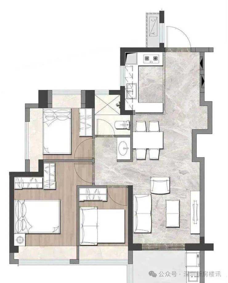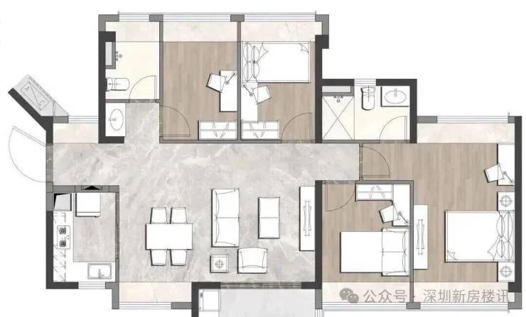 最低门槛67㎡2房、79㎡3房1卫,开盘有一定折扣优惠,最低预计总价300多万上车2房,是目前整个龙华区域在售新盘中算是最低上车门槛。