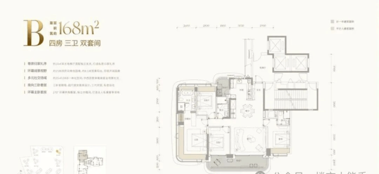 如果首付可以再多拿出60万到70万,其实可以考虑把预算往上提一档,看看168㎡这一类户型。