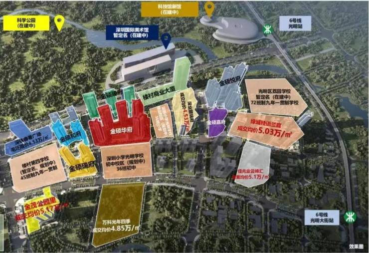 地铁配套:项目距离6号地铁线“光明站”约600米,步行需要11分钟左右,2站到凤凰城站,可以换乘13号线,4站到光明城站,这里可以换乘光明城高铁站/6号地铁线,6站到宝安上屋站,11站到南山西丽留仙洞,14站南山高新园,18站到后海。