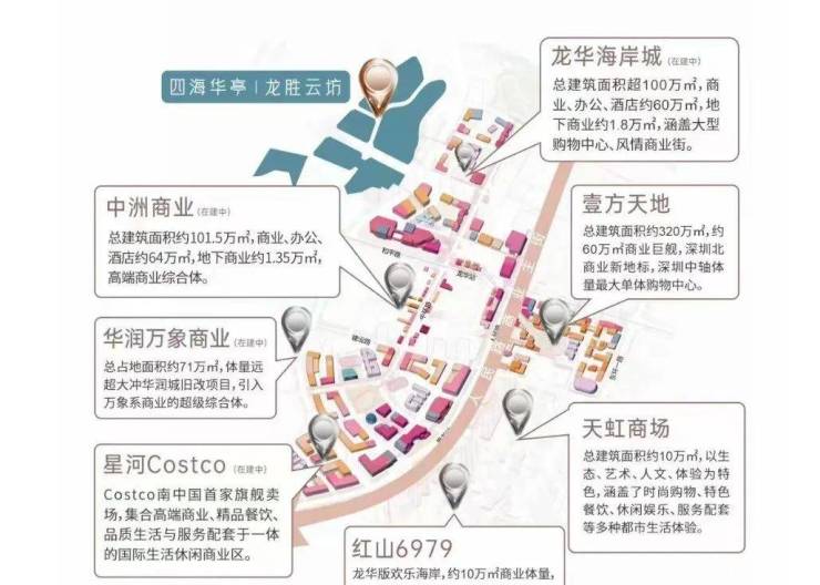 除自身商业和周边商业街、传统百货商场外,项目1.5公里范围内还分布有壹方天地商业、百佳华购物中心、龙华商业中心、RRL mall购物中心、天虹商场、华润万家等多个中大型优质集中式商业。