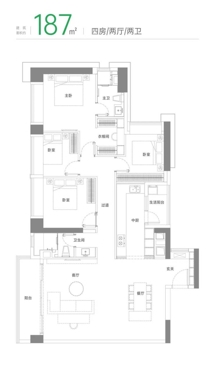 187㎡四房两卫(3/4单元高区)