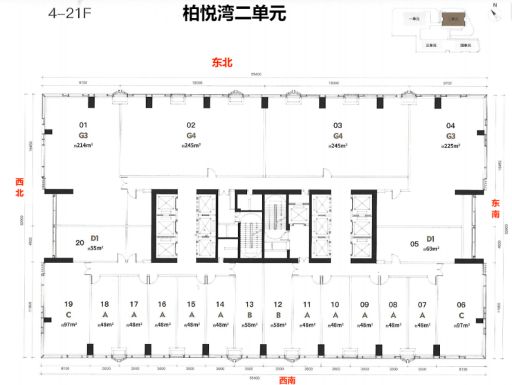 梯户比:公寓5梯24户 商办6梯20户