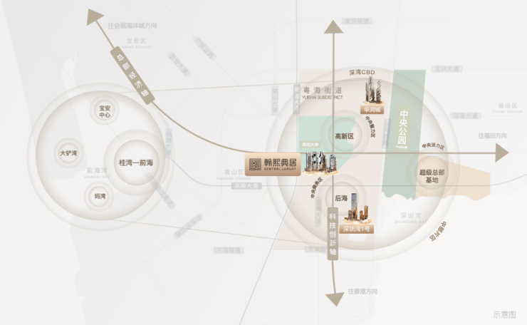 翰熙典居占位深圳经济命脉滨海大道与南北科创主轴南海大道交汇处十字轴心。集萃城市区位、科创、人文、TOD四大中心源点。依托两大科技园、四大总部基地,集总部经济+全球科创中心价值,坐享区域发展利好。