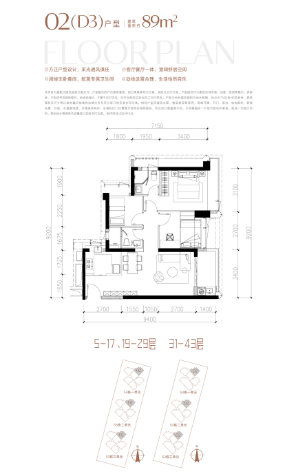 1️⃣58栋77套:89㎡3房,190㎡4房(5月推售)