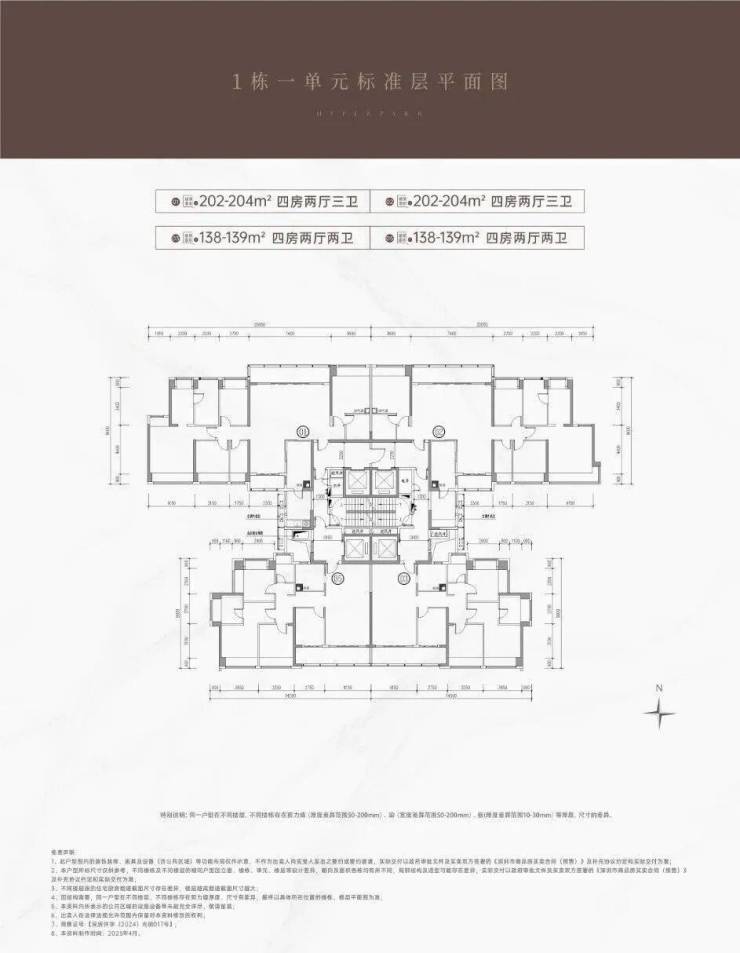 建面约138-139㎡四房两卫 专梯入户