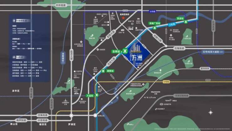 如今「合正方洲二期·瀚府」周边又多了地铁14号线和16号线。并且,预计从2026年即明年开始,还将陆续通车龙大(深惠大鹏支线)、深大、深惠三条城际线。