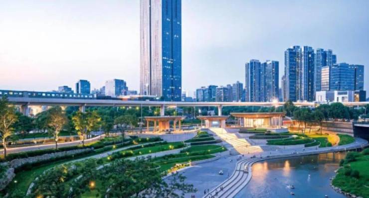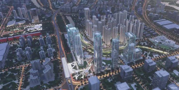 “一河两区”之间则通过立体连廊通道及新增市政道路联系起来,将原本被龙岗河割裂的地块组装形成整体、亲水的综合大社区。