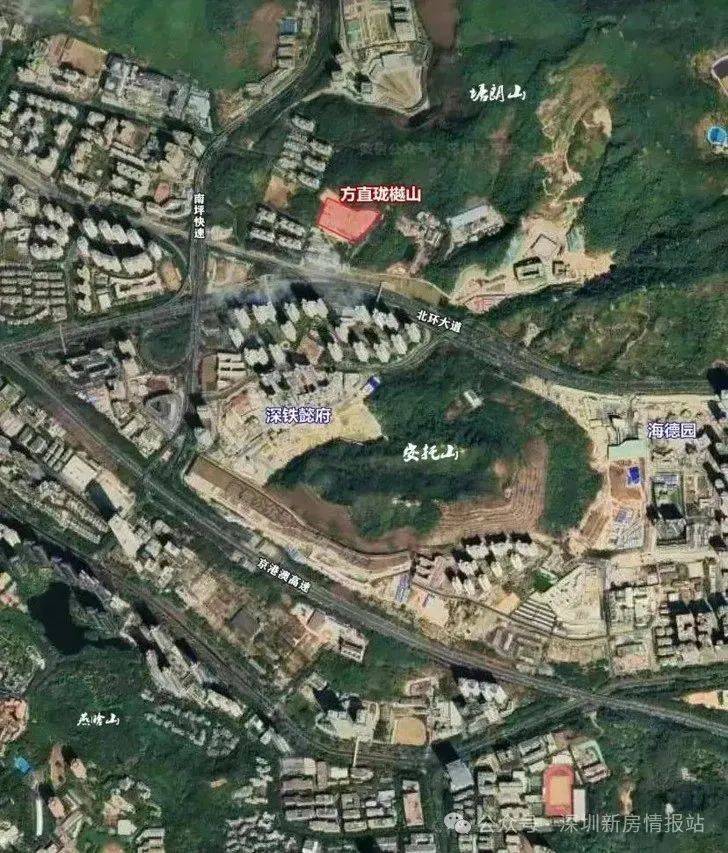 方直珑樾山花园位于南山区深云村北片区,安托山山脚,具体位于北环大道-龙珠大道和公园路交汇处,地铁7号线深云站C出口北侧约150米左右(百度地图测量,仅供参考)。