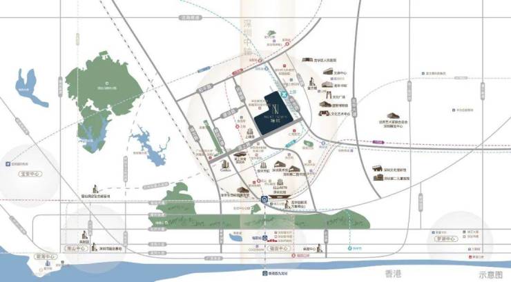 项目依托深圳北站与宝安国际机场,实现深港、深广半小时生活圈,共融大湾区1小时生活圈,通达全国,链接全球。