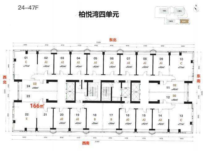 楼层高:1单元5-40层-2单4-43层元商办43层,3-4单元4-48层