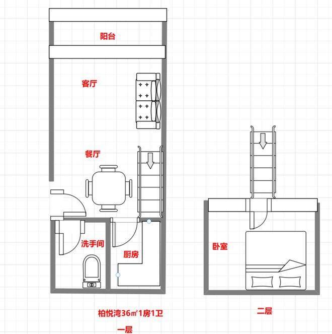 36㎡1房2庁1卫户型图