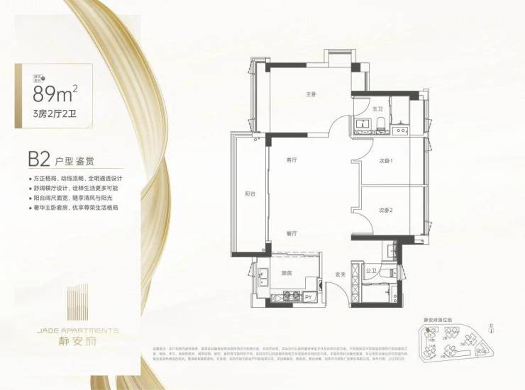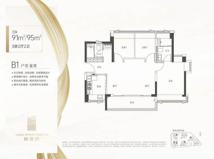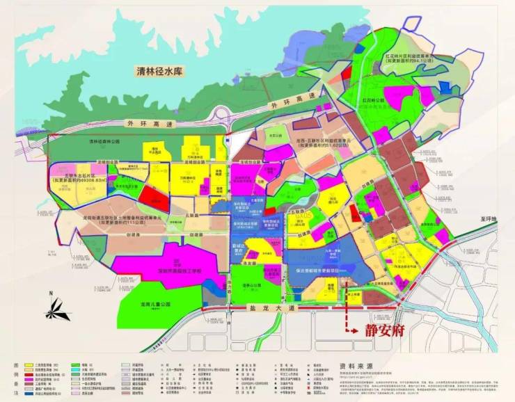 静安府于龙岗街道玉岭路与楼岭路(规划路)交界处。总建筑面积13.8万㎡,规划建设5栋住宅,总户数1050户其中商品房920户,保障房130户。套内面积≤90㎡共990户,占比约94%。小区配建一所1600㎡幼儿园。