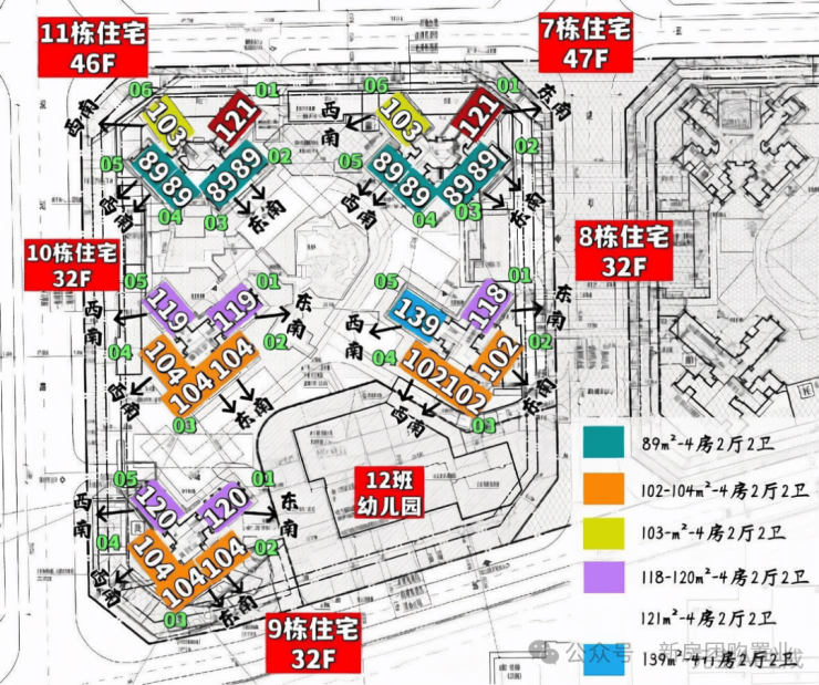 整个项目规划户数为1992户,其中东区1016套,西区976套,全部都是规划的商品房,涵盖了多种户型设计。其中,6栋、8栋、9栋和10栋的高层住宅采用2梯5户设计,3栋和5栋为2梯6户,而1栋、2栋、7栋和11栋的超高层住宅则采用3梯6户设计。