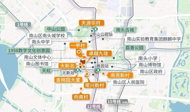 地铁1号线大新站、桃园站双地铁口物业,2站前海/高新园、4站宝中/后海、6站超总/海上世界。