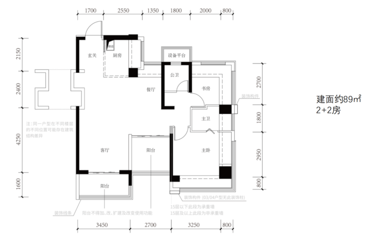 (1)建筑面积约89㎡户型