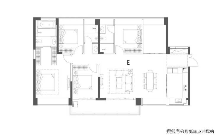 双卫、全凸窗等细节设计,让每个居住空间与景观互动。最小的A户型4房2厅2卫,建面约111㎡;最大的E户型5房2厅3卫,建面约174㎡,比市面上同等条件的户型空间获得感更强。