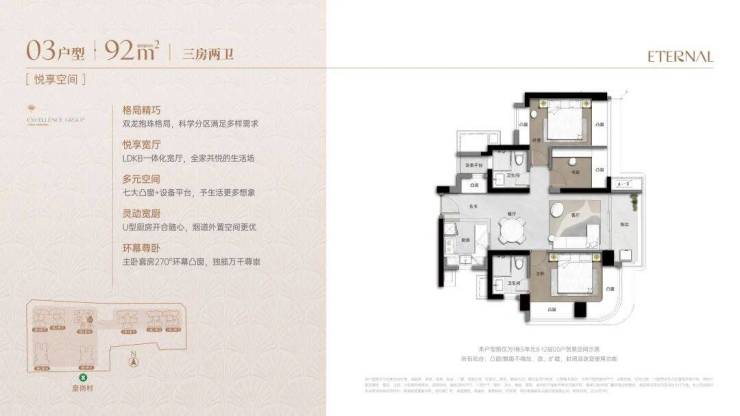 建面约92-173㎡三至四房缦系新规产品, 六大设计亮点,定义人居新境。