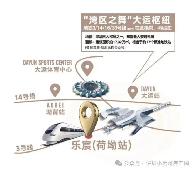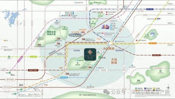 乐宸花园,位于深圳市龙岗区园山街道龙岗大道与坳背路交汇处北侧,地处龙岗大运新城核心地段 。大运新城是深圳市六大"城市新客厅"之一,承担着国际商务中心、国际教育中心、创新枢纽中心、创新研发中心和文体文化中心五大核心功能 。作为深圳东部CBD的核心区域,大运新城享有约1.4万亿东进战略的重资投入,是深圳城市发展"第三极"的重要组成部分。