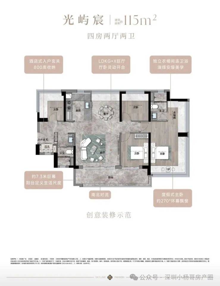 115㎡的4房2卫,折后总价440-483万/套,单价3.9-4.21万/㎡。