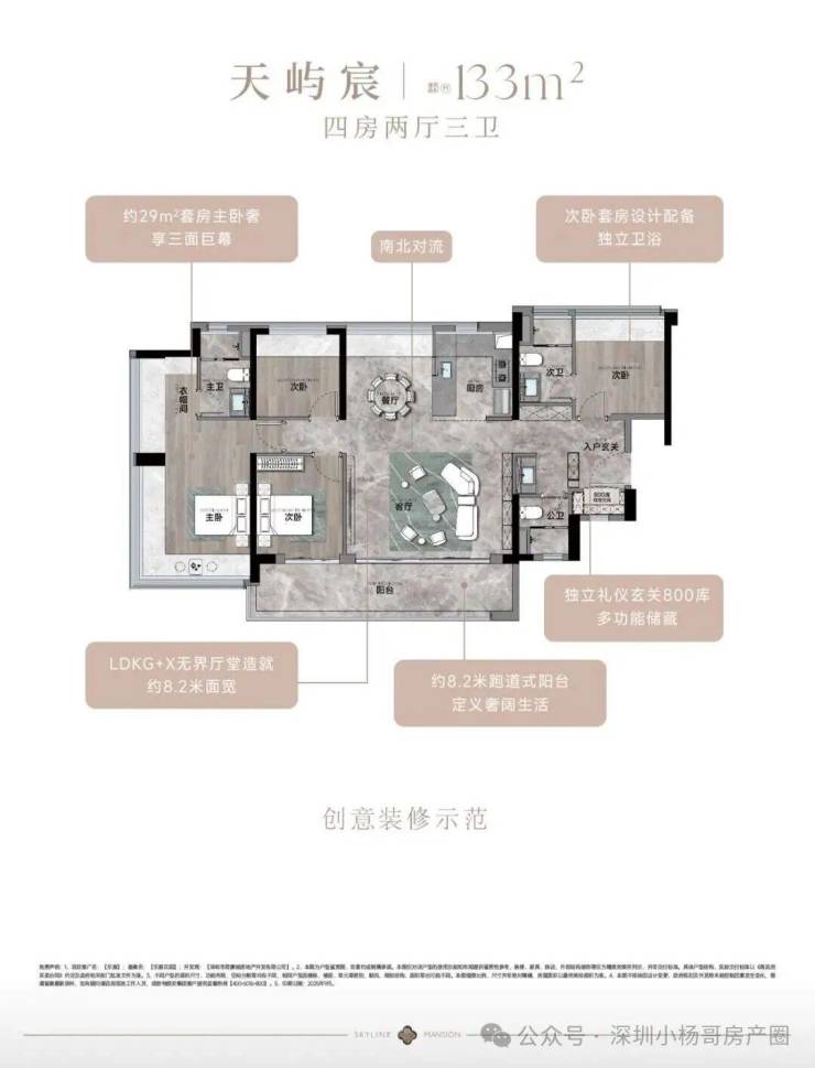 133㎡的4房3卫,折后总价520-577万/套,单价3.9-4.33万/㎡。