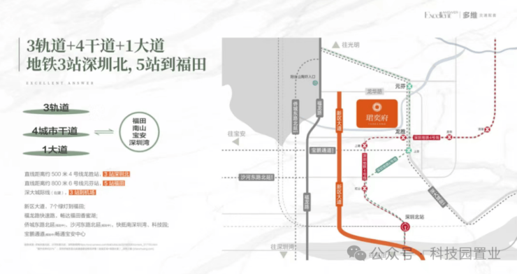 项目位于位于龙华区大浪街道龙坂大道与锦华南路交汇处,是卓越城市综合体项目内的住宅,其综合体包含商业、办公、酒店等项目。