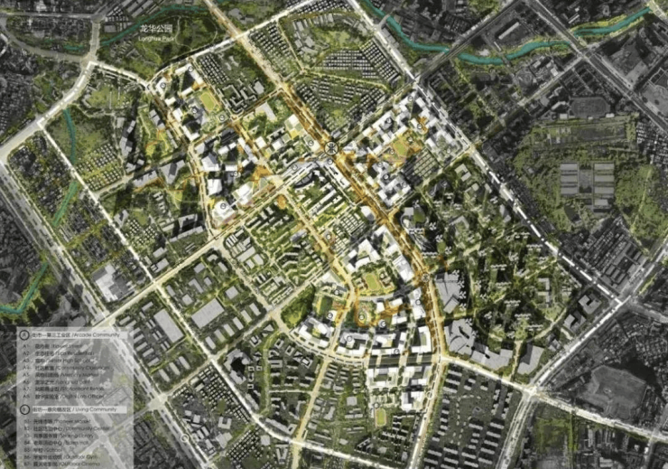 龙华超级商圈定位为市级商业中心,片区突出品质提升,主要通过城市更新的手段,对城市建筑和功能业态进行重塑。并积极探索“空中连廊+地面购物+地下行车”的复合空间形态,打造世界级未来消费体验中心。