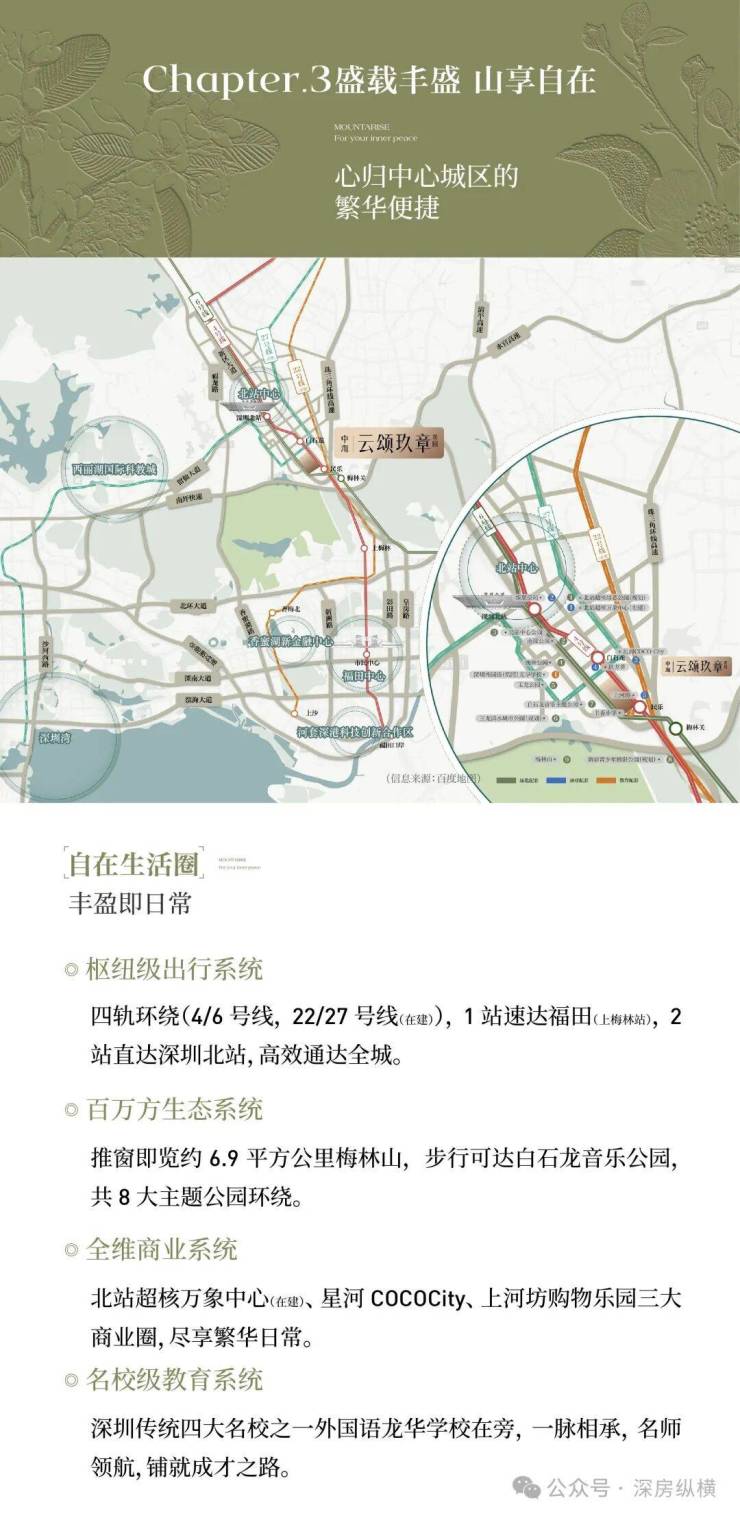 中海云颂玖章,龙华梅林关高端力作,106-143㎡全南向‘+1房’设计,得房率拉满,无遮挡梅林山景。23.7亿激烈竞得地块,108轮竞价见证稀缺价值,福田咫尺,改善生活一步到位。"