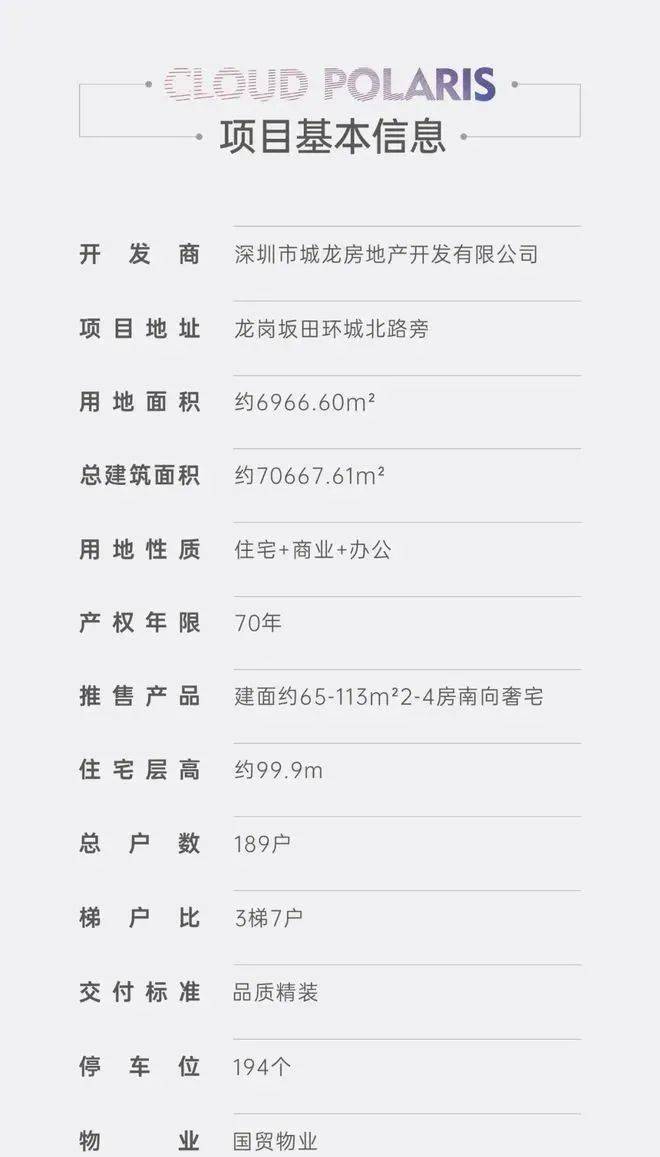 城建云宸汇位于深圳市龙岗区坂田街道坂澜大道和环城路交汇处,由深圳市城建集团开发建设,是集住宅、商业、办公和宿舍为一体的综合体项目,推售140套住宅房源,面积65-113㎡的2-4房。