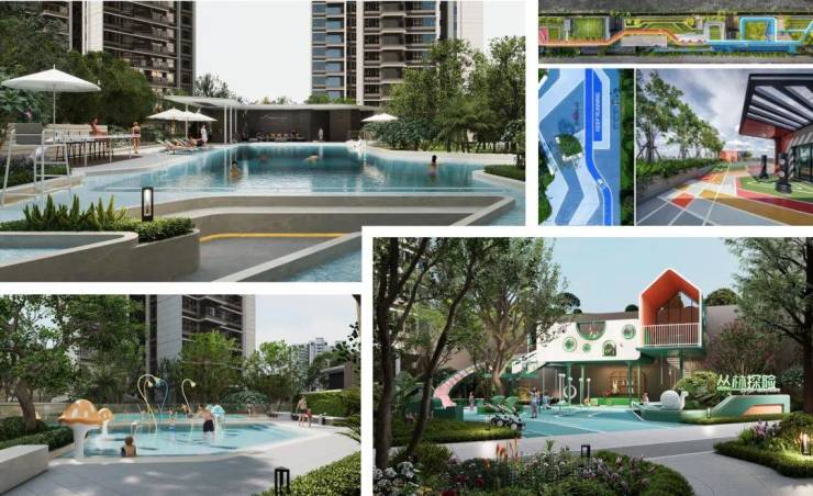 👉约1.6万㎡静谧花园:超大规模园林,打造一个功能复合化&多维立体的园林景观,摩登泳池、森系儿童乐园、四季隐形轻氧跑道等多功能场所。