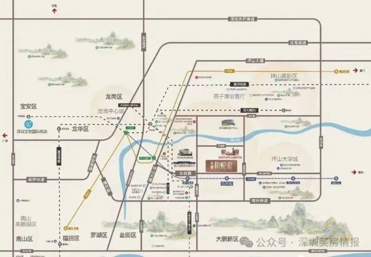 约1.2KM到燕子湖国际会展中心,约6KM内到坪山体育中心,紧邻约10万㎡的六馆一城、深圳自然博物馆等环绕,媲美福田市民中心。