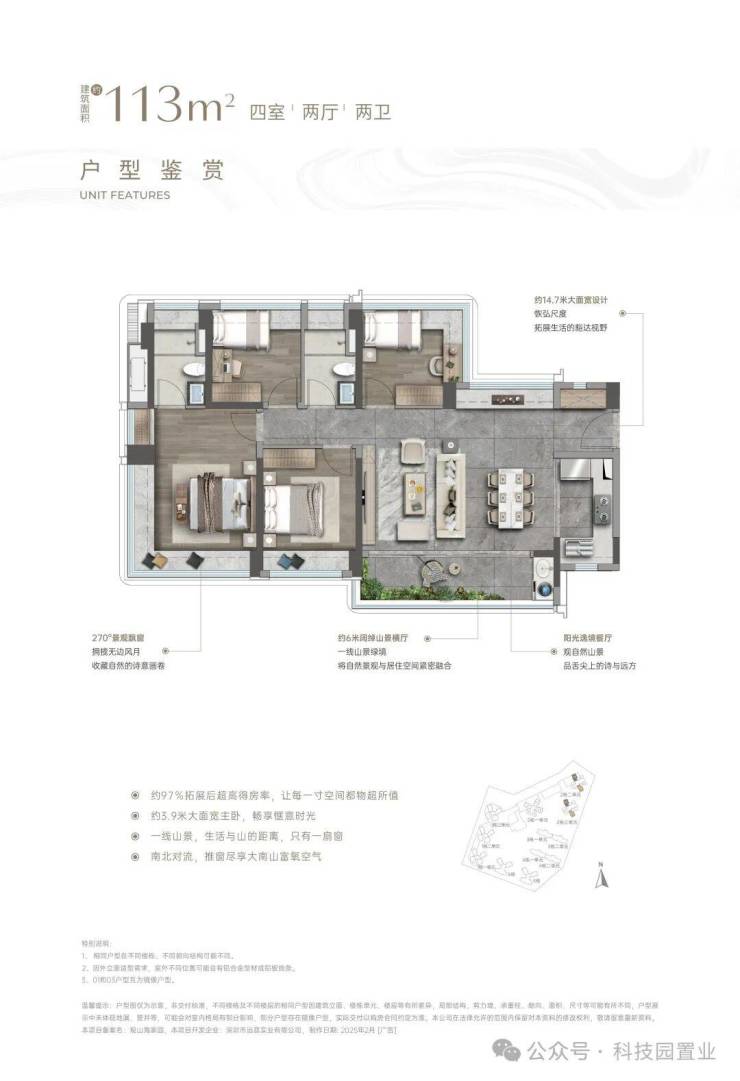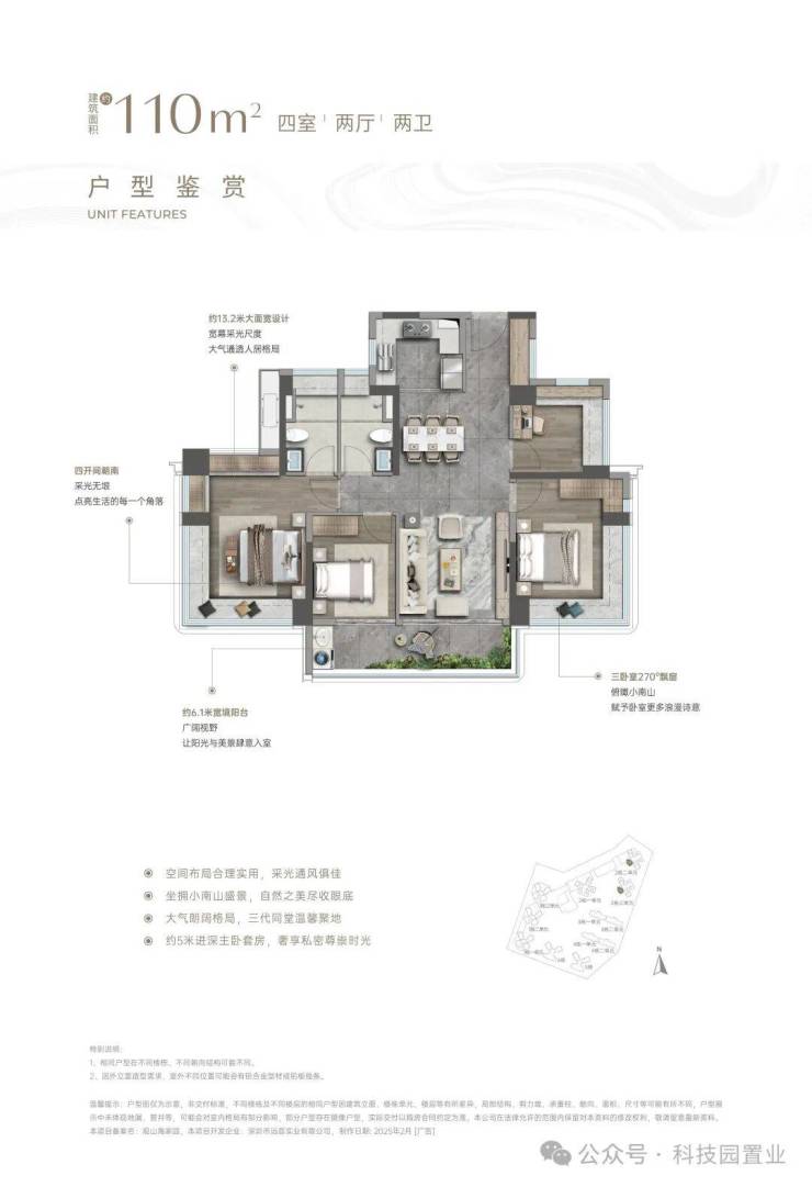 ⑥【一步到位性价比王牌 前海改善头等舱】4栋建面约138㎡奢阔山居范本:LDKB一体化,增配多功能厅、最大约15.5米南向四开间、约6m宽境阳台、主卧270°巨幕飘窗带独立卫浴及衣帽间、最高约94%拓展后综合使用率