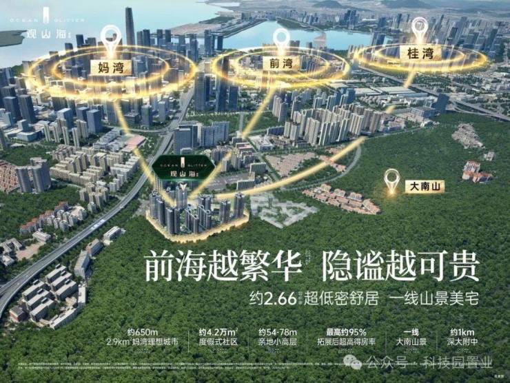 在区位上,项目毗邻大南山,属于南山中心区荔湾板块,靠近前海妈湾片区和蛇口片区;附近有妈湾在售的万科瑧湾悦价格在10.5万,观山海家园售楼处电话:4008368707,以及即将入市新盘有妈湾的前海招商臻玺预计在10万左右,项目这两个项目观山海花园并不在妈湾核心位置,属于比较边缘地界了,后面入市大概率价格方便也会稍微比较低一些,项目相比于这两个小区优势在于景观背山面海以及大社区花园。