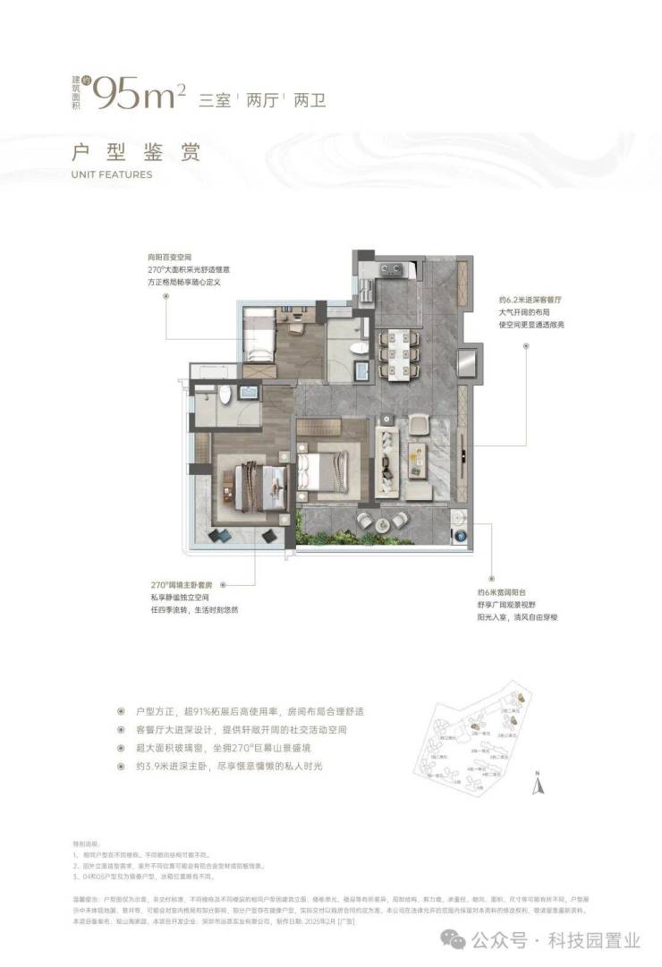 建面约95㎡进阶三房 仅此118席臻品典藏