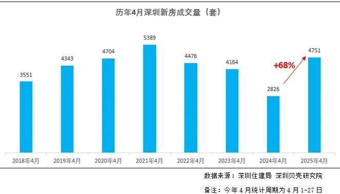 今年4月,深圳楼市成交表现优于近年同期。据深圳贝壳研究院监测,本月截至27日,深圳新房二手成交总量为11017套,比去年4月增长42%,创近五年新高,其中新房成交量同比增长68%、二手房成交量同比增长27%。