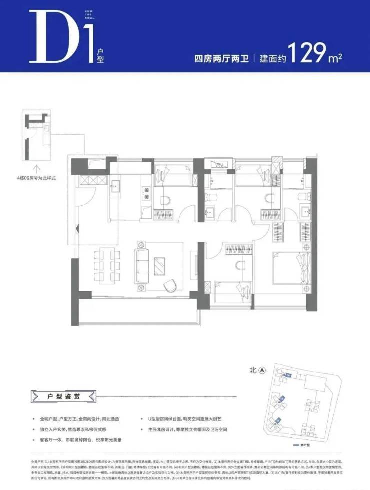可售户型:103㎡三房两厅两卫、129㎡四房两厅两卫