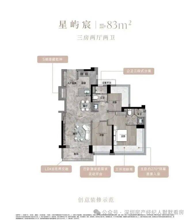 【颐安乐城三期】作为新规之后建设的楼盘,其户型设计颠覆了颐安集团以往的传统,采用全新的2.0+户型设计,得房率高达100%,83平做到了3房2卫,99平做到了4房2卫。所有单位均为3梯6户,确保每一户都是全南向户型,采光充足。