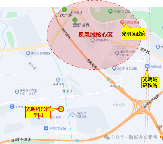 项目紧邻光明凤凰城,距离光明行政中心和商业中心仅4公里,周边蓝鲸世界、万达广场等多个综合体已落成。