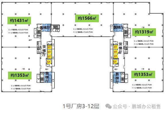 首层荷载 1500 KG/㎡,2-6层荷载 1000 KG/㎡,7-13层荷载 750 KG/㎡,设备放心布局