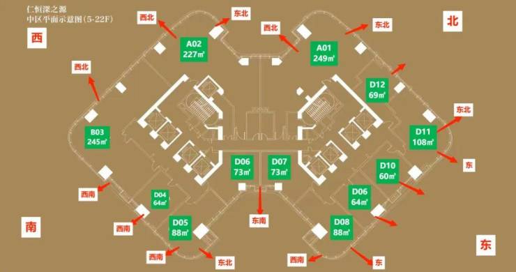 项目定位为地标豪宅项目,5-22F标准层为12户、23-44F标准层为6户,主力产品为建面约247㎡的环幕大平层,带有270°弧形落地窗,可将罗湖优质景观尽收眼底。