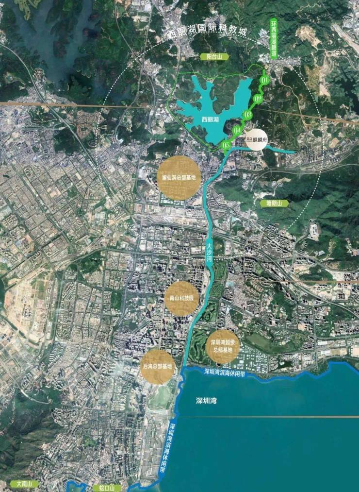 14公里西丽湖环湖栈道+13.7公里大沙河生态走廊+34公里深圳湾环湖栈道,汇聚城市自然资源标地,山河湖海城市绿脊。