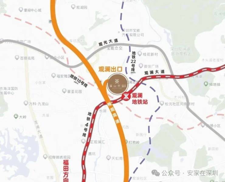 项目距离4号地铁线“长湖站”约1.1公里,周边18号线/22号线(在建中),直达北站枢纽、福田CBD;紧邻梅观高速、龙华大道、观澜大道,快速通达全城。