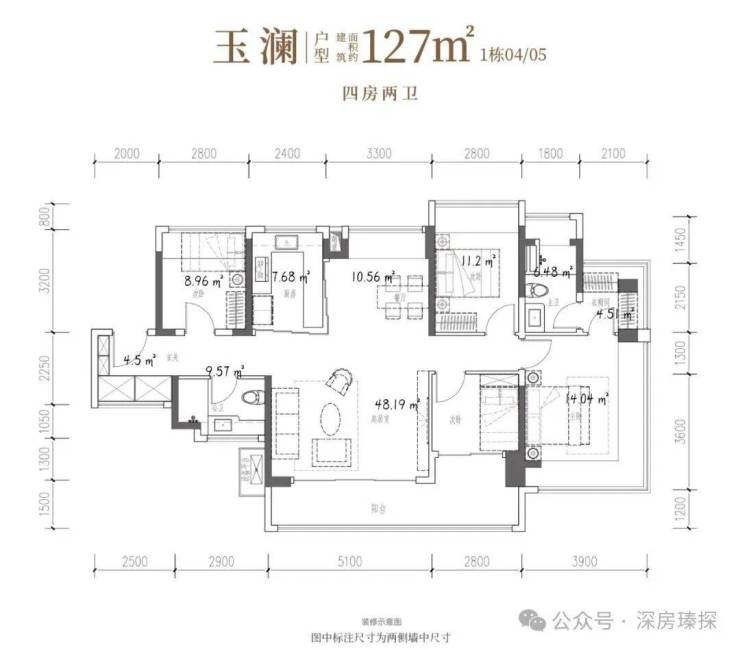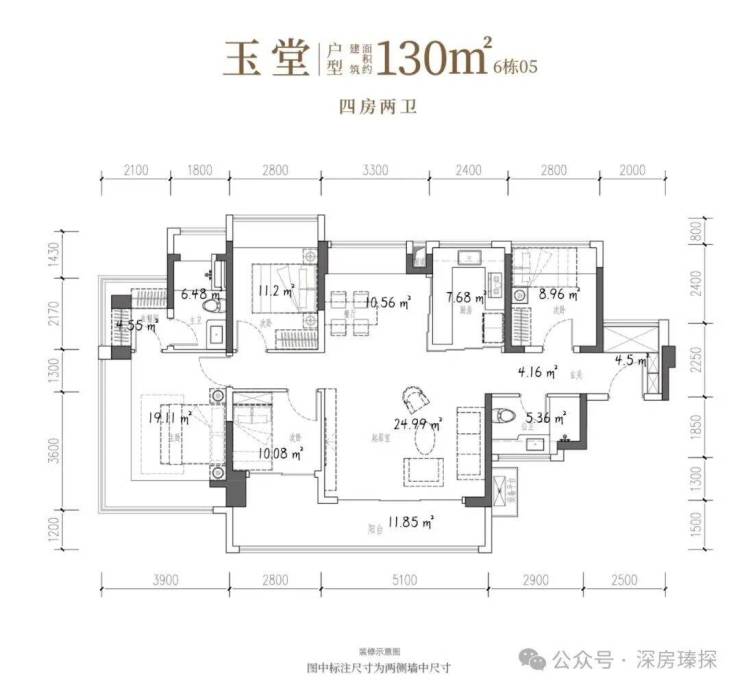 127-130㎡的4房2厅2卫,折后总价573-625万/套,单价4.43-4.91万。